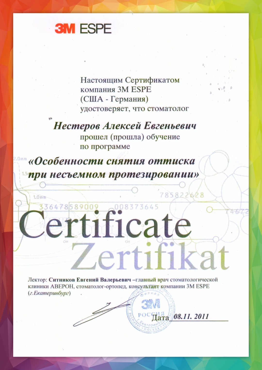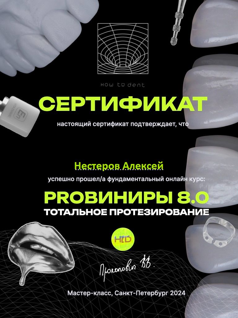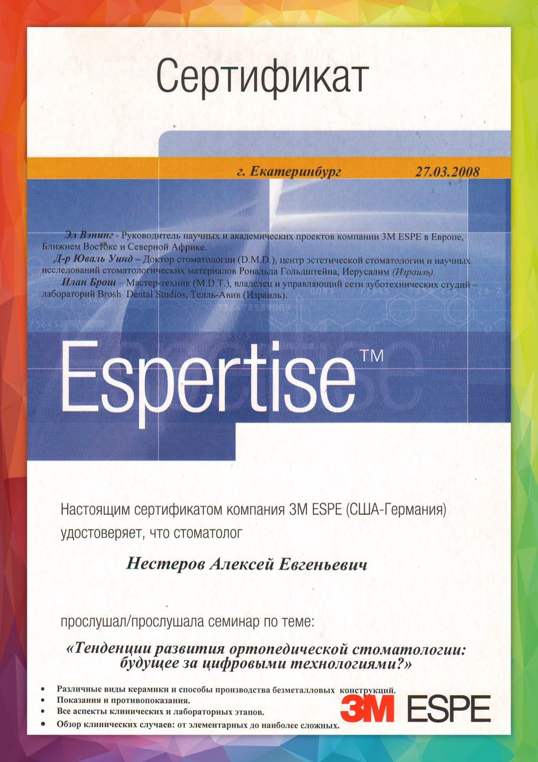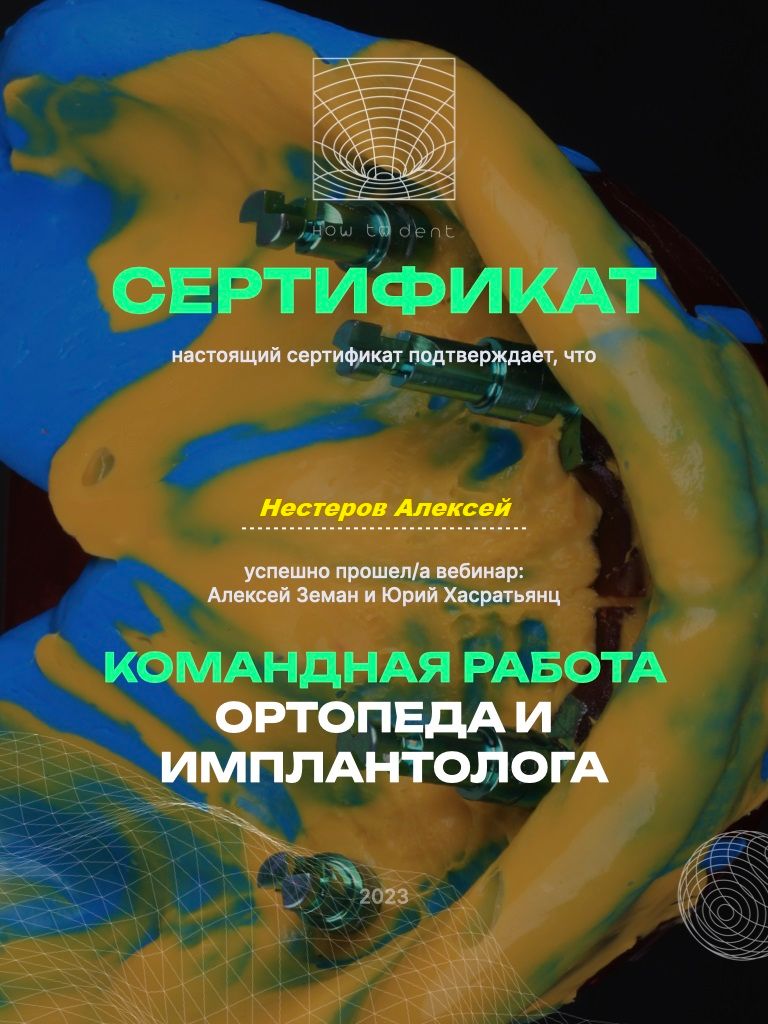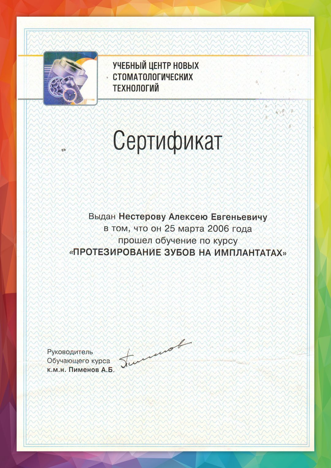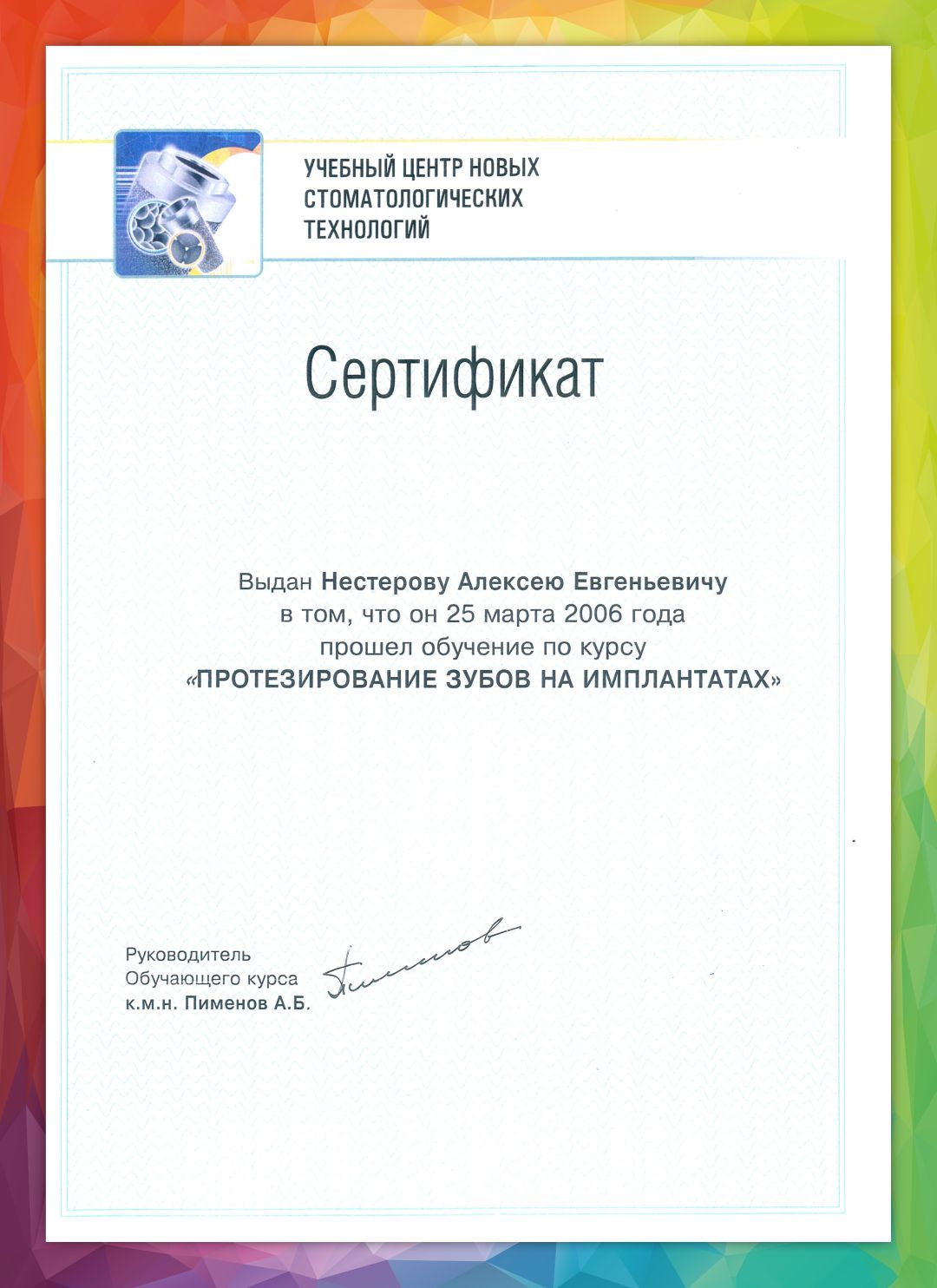 2007г. - прошел профессиональную переподготовку в ГОУ ВПО УГМА Росздрава по ортопедической стоматологии.