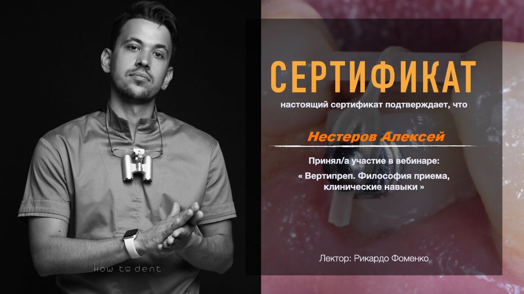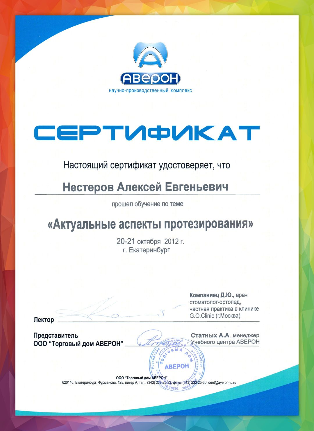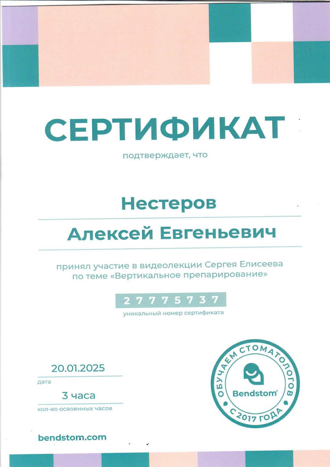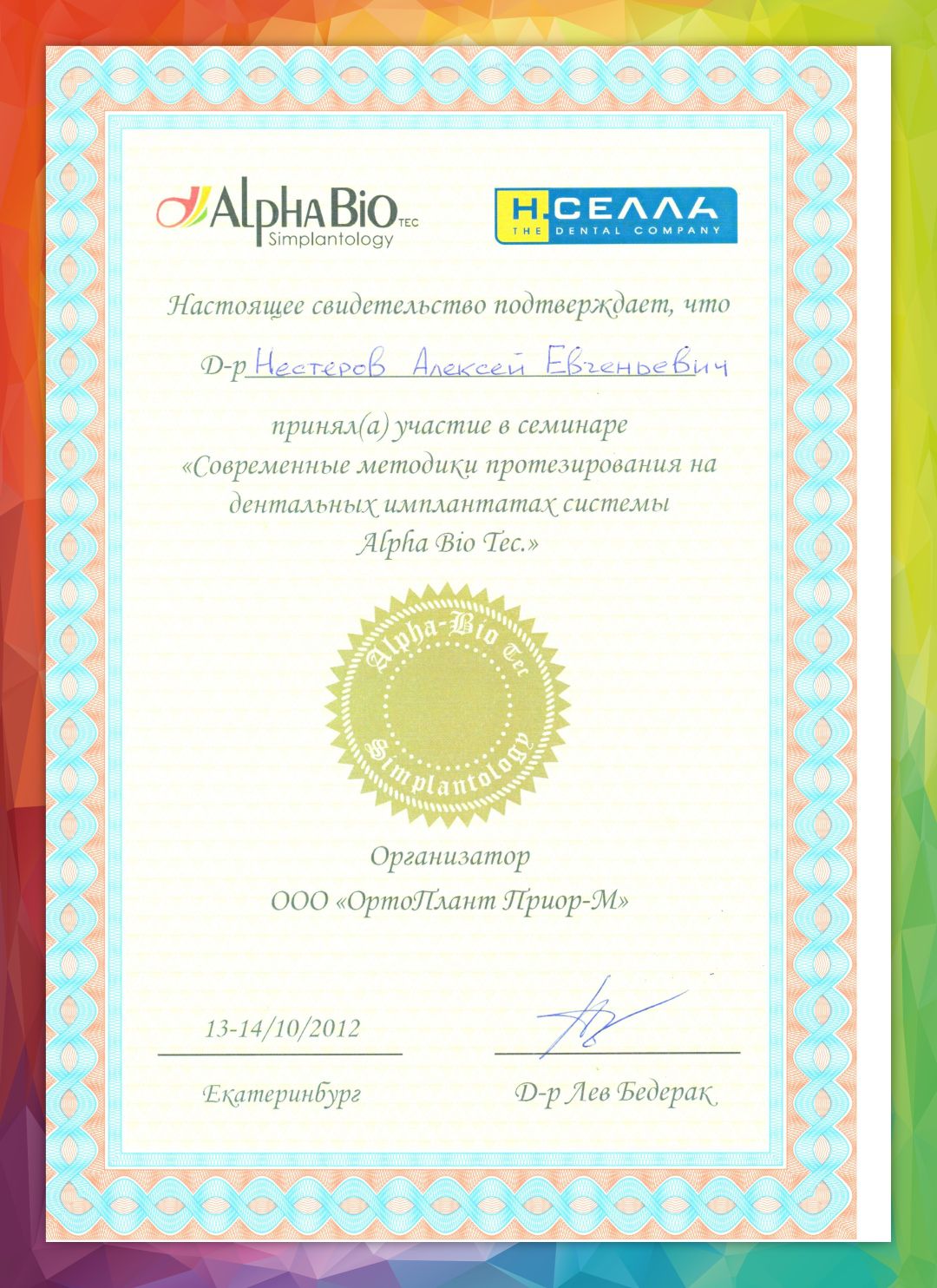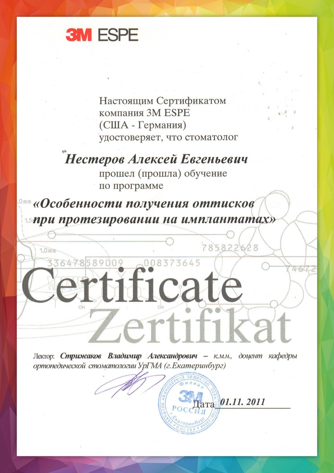 2007г. - прошел профессиональную переподготовку в ГОУ ВПО УГМА Росздрава по ортопедической стоматологии.