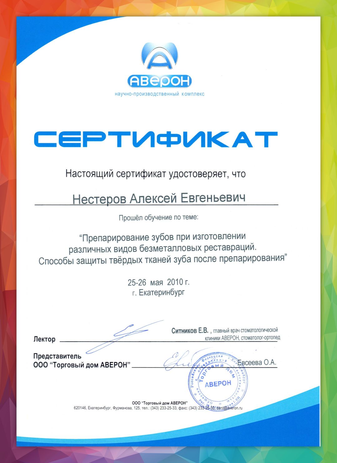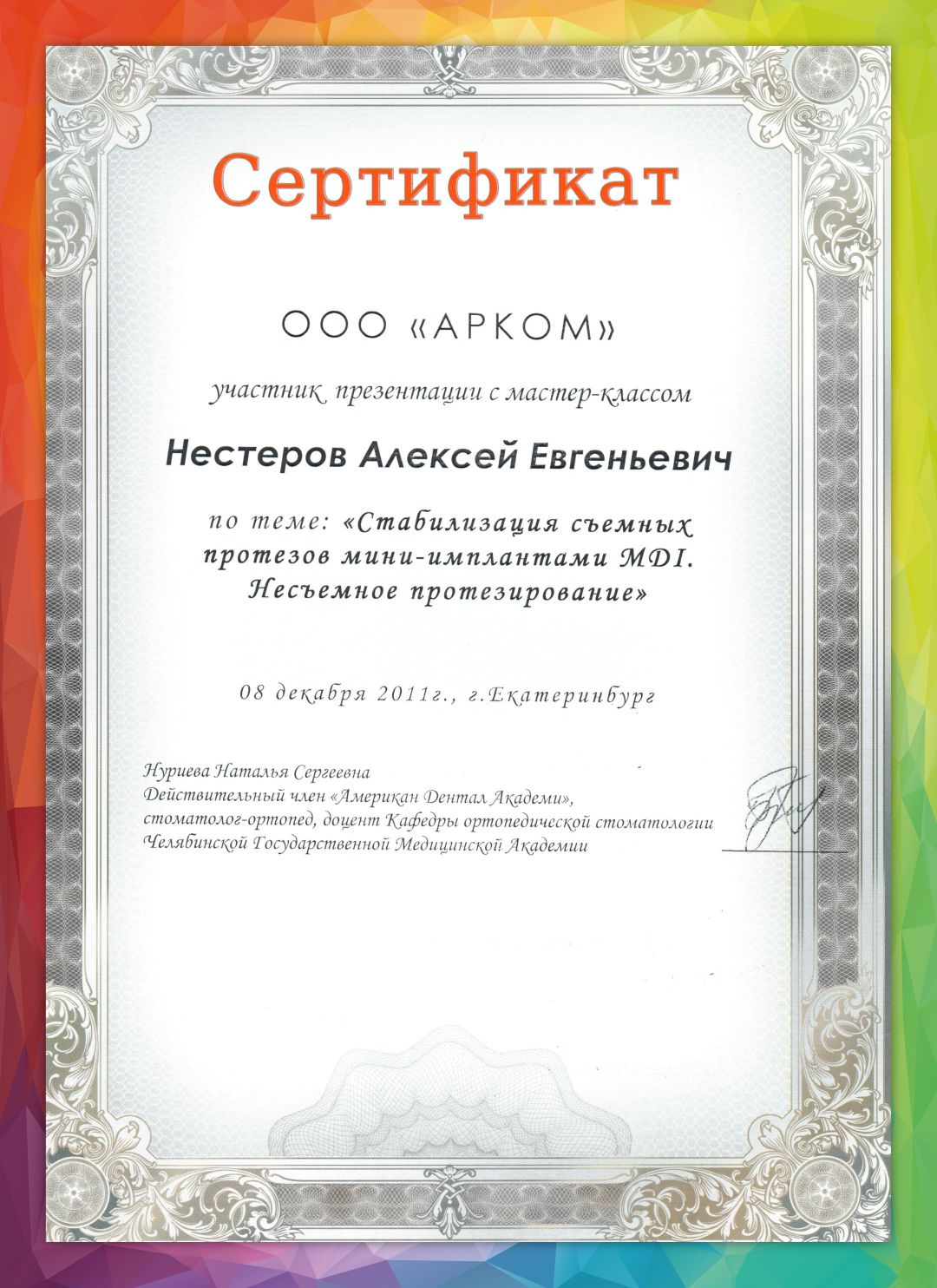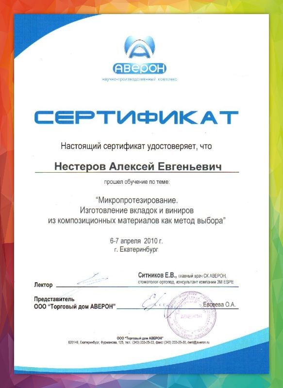 2001г. – окончил стоматологический факультет Уральской Государственной Медицинской Академии.